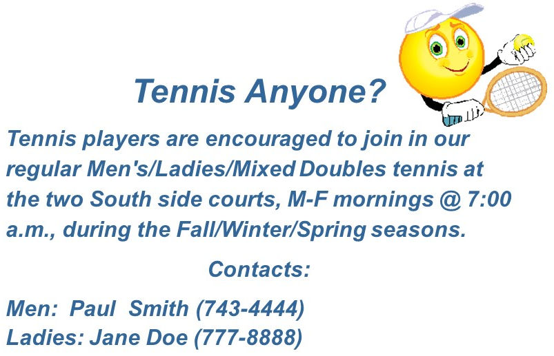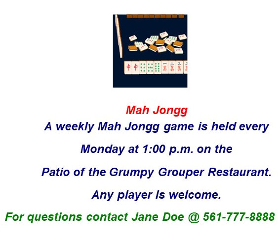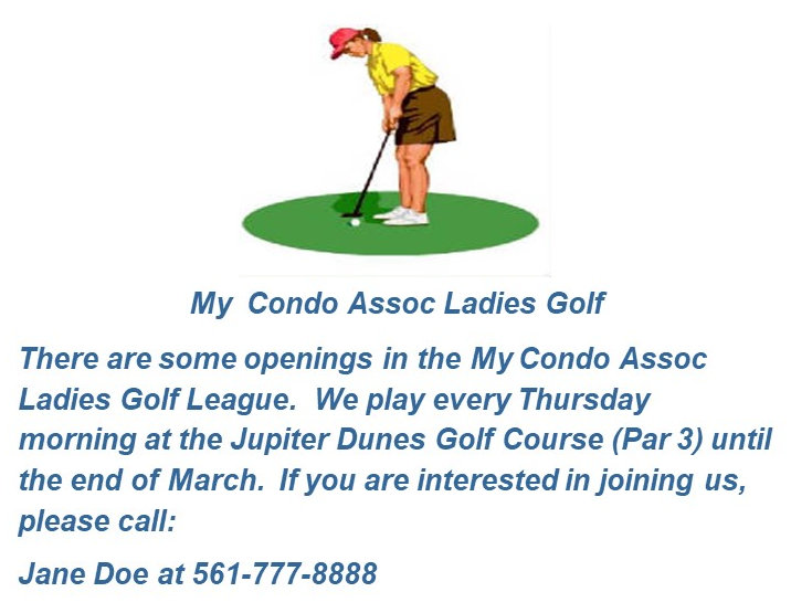 Following is a list of activities for members of the fictitious My Condo Association...